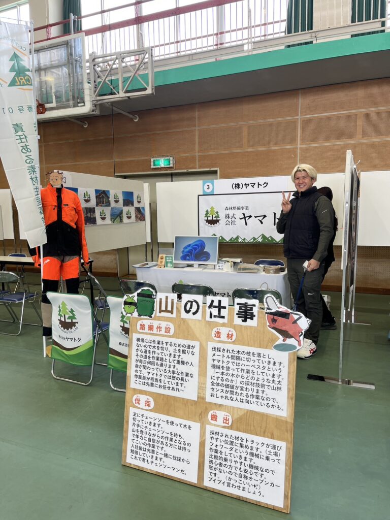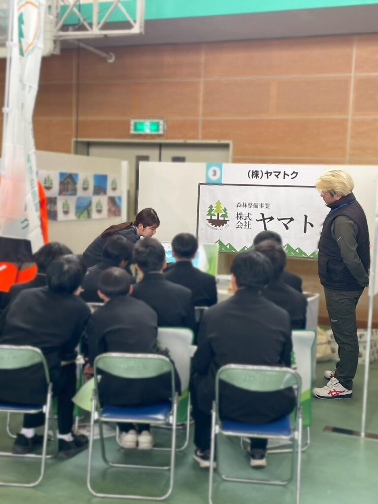 「花粉症の人はいますか?」「チェーンソーはいくらですか?」といったような高校生らしい質問もあったり、なかなか馴染みのない林業の仕事について理解を深めてもらえたのではないかと思います。 今回の説明会を通して、若い世代に“林業の身近さ”を伝えることの大切さを改めて実感しました。今後もこういった機会を通して、高校生をはじめとした若い世代に関わっていきたいと思います。